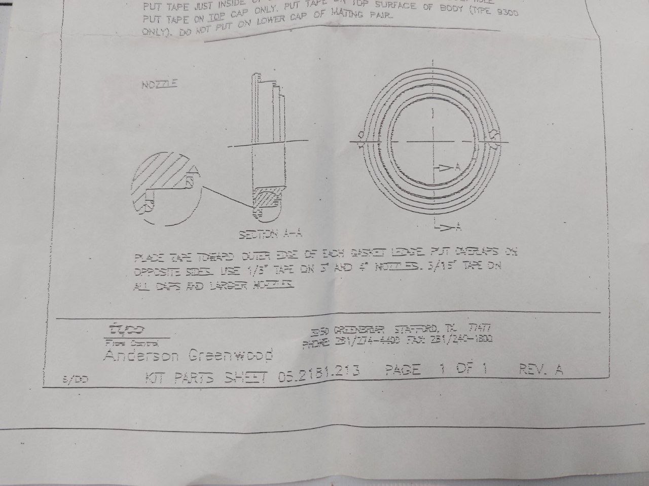 Tyco Soft Goods Kit Teflon Tape Gasket