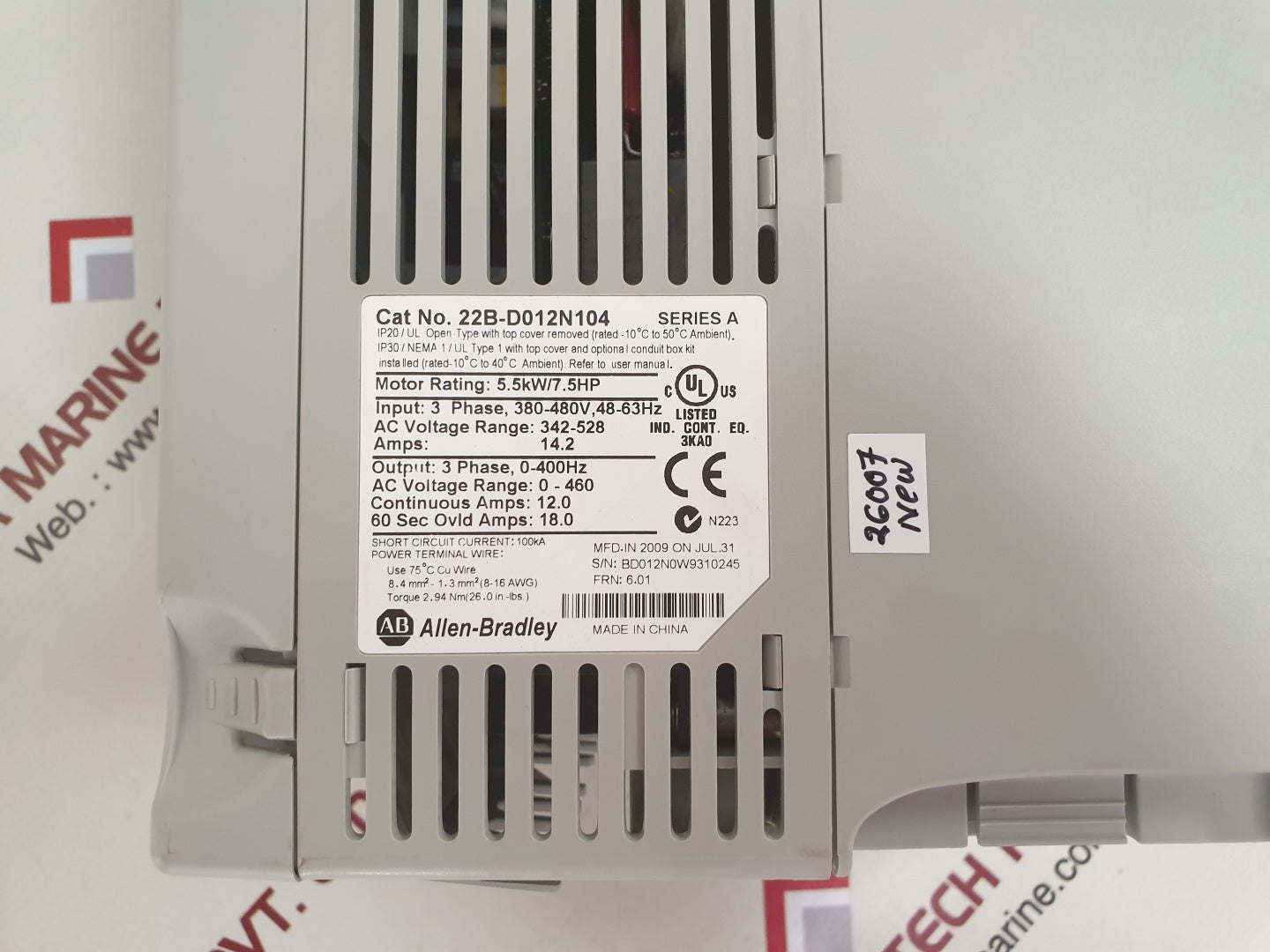 Allen-bradley 22B-d012N104 Powerflex 40 Ac Drive, 480 Vac, 3 Phase, 7.5 Hp, Ip20