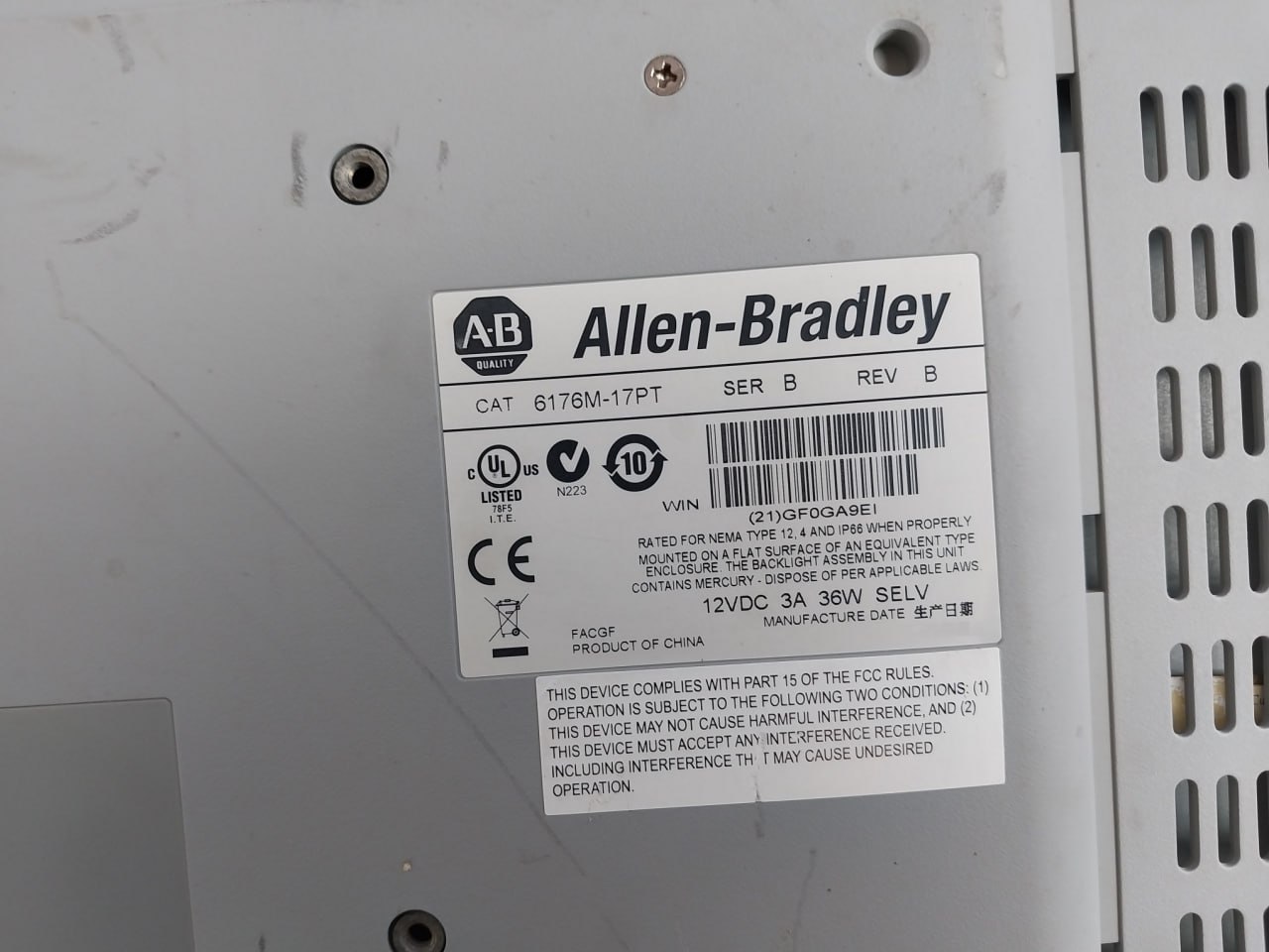 Allen-Bradley A-B Quality 6176m-17pt Touchscreen Display Monitor 12v