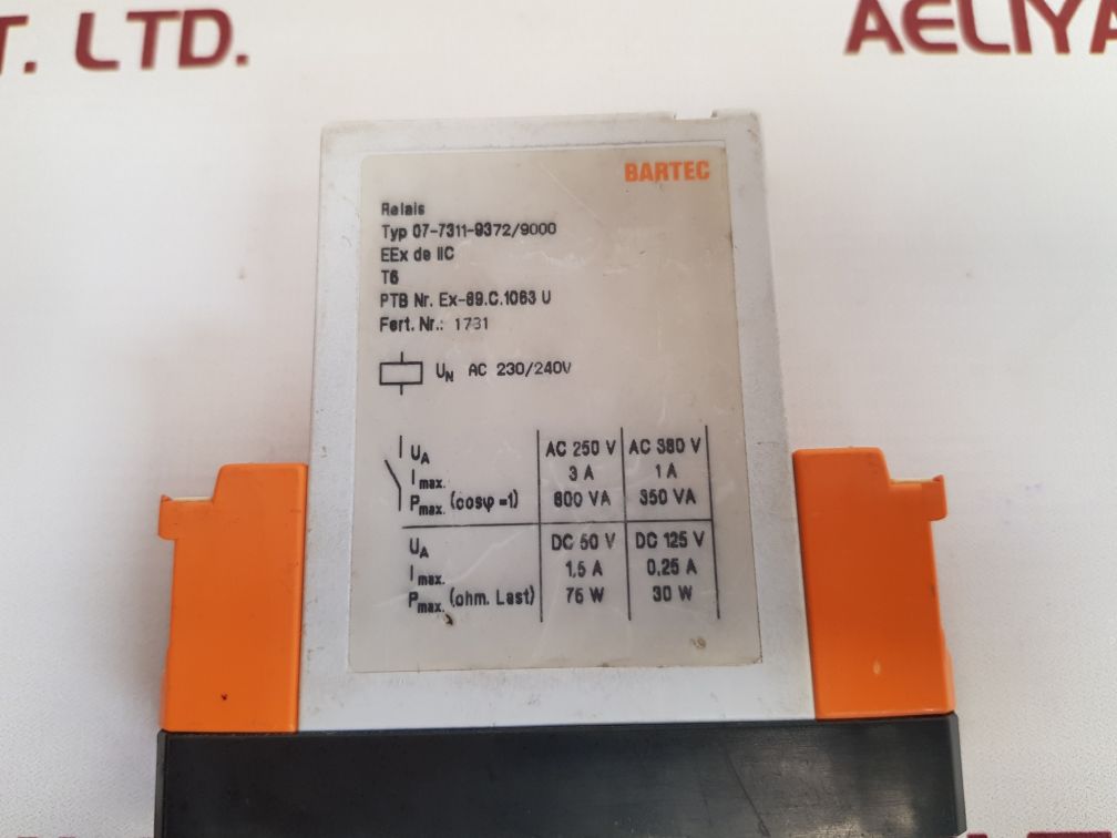 Bartec 07-7311-9372/9000 relay bartec typ: 07-7311-9372/9000 relais/relay t6 ptb nr. ex-89.c.1063 u fert.nr.: 1781 ac 230/240v weight : 271 gm