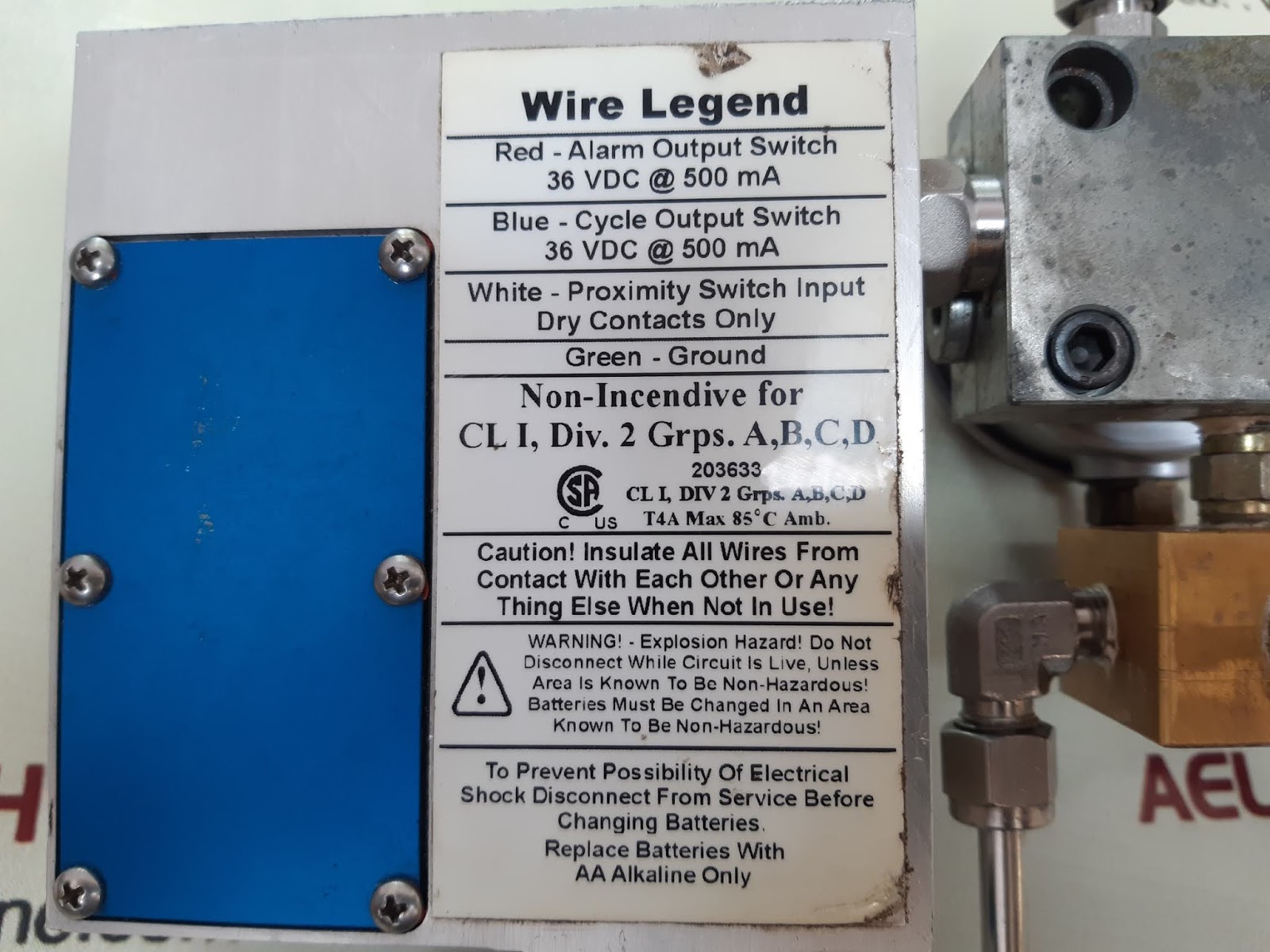 | Wire Legend – Blue | Cycle Output Switch |