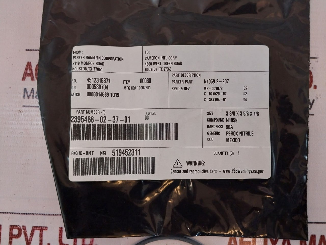 O-Ring, As568-237, Nitrile 90d