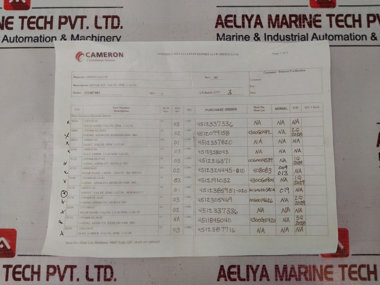 Cameron 2408830-24-01-99 Valve Repair Kit