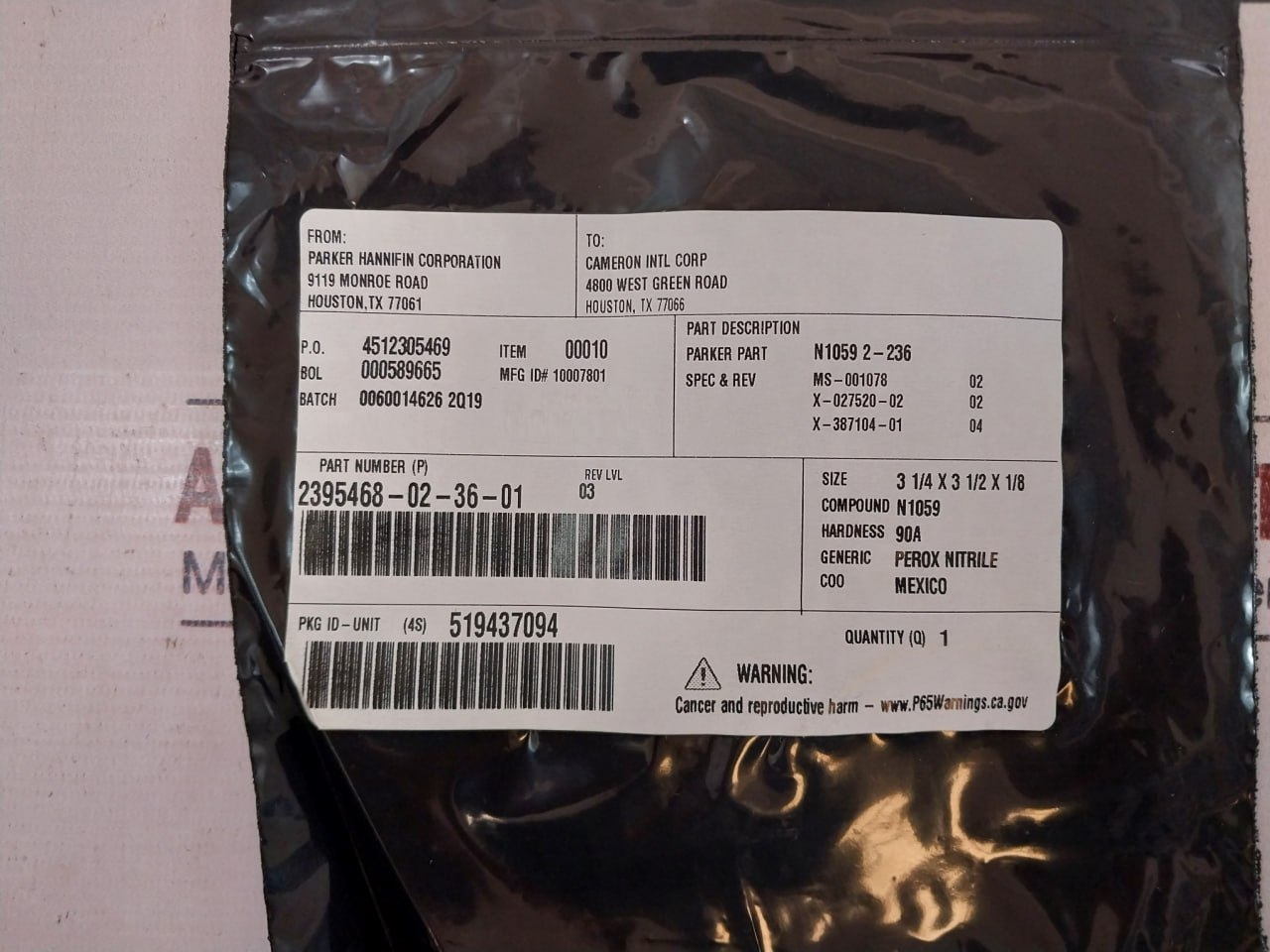 O-Ring, As568-236, Nitrile 90d