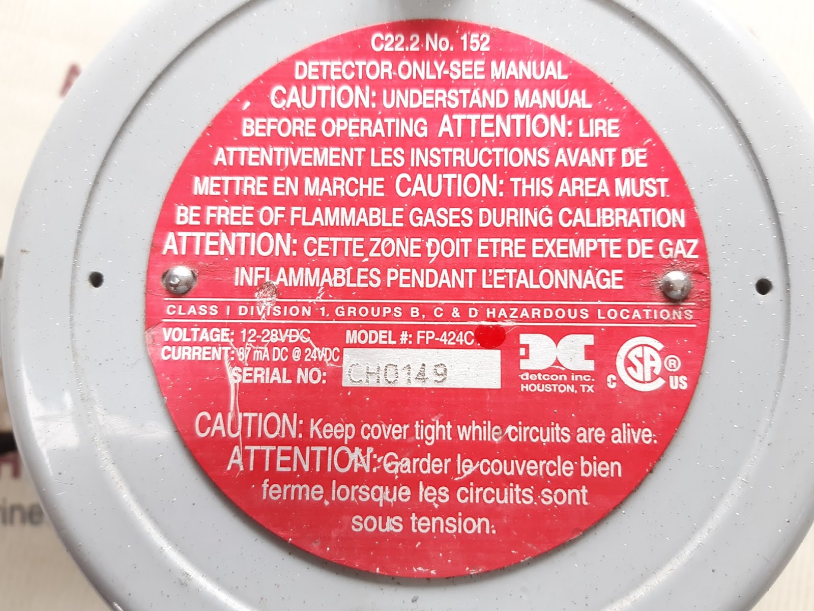 Detcon fp-424c gas detectors 897-850000-010