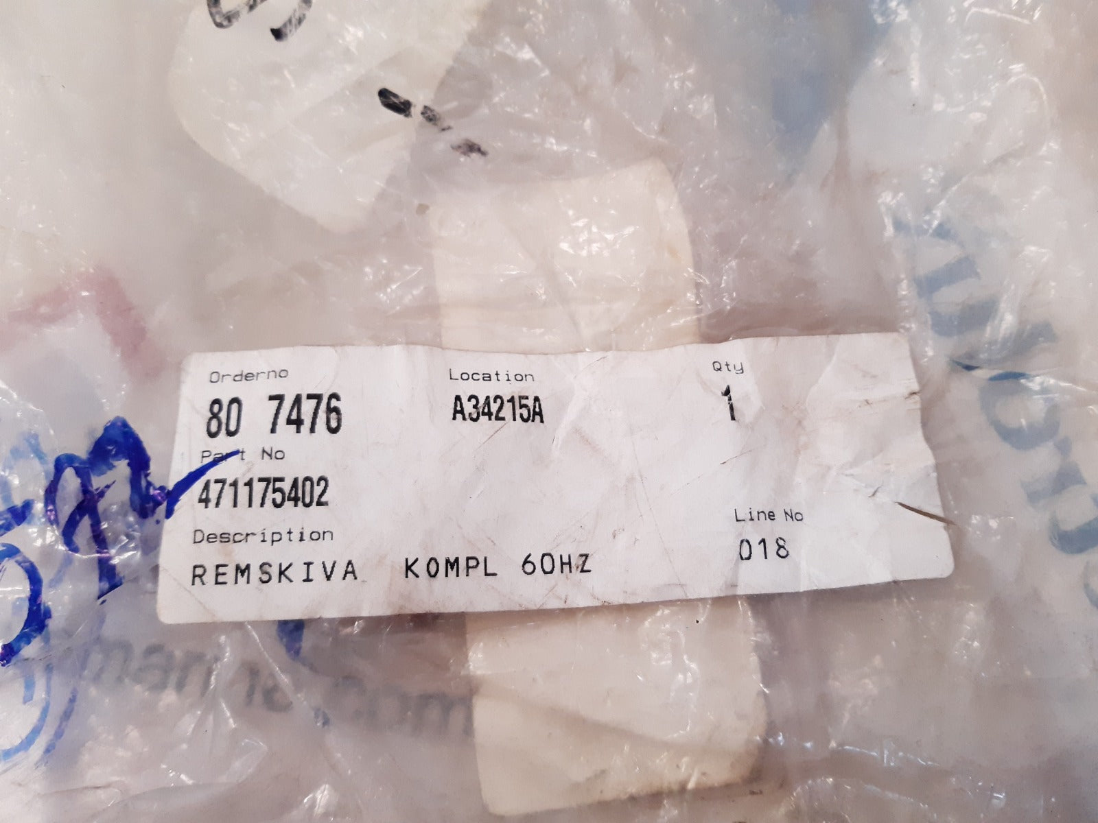 | Description | Remskiva Kompl 60Hz |