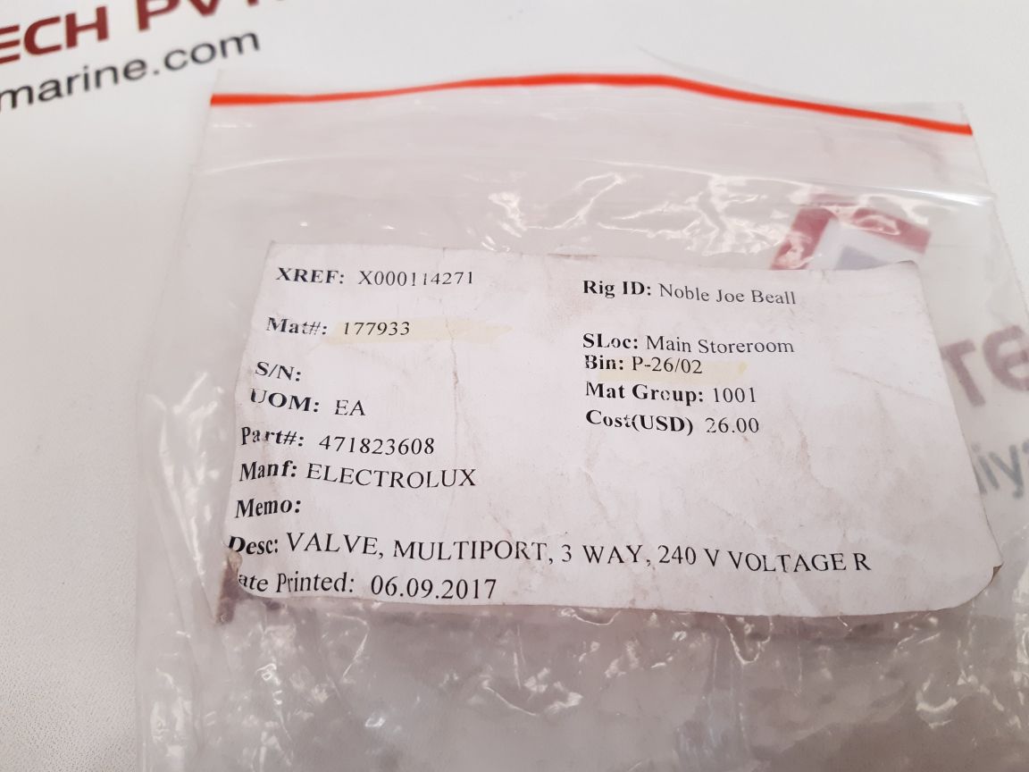 The Electrolux 4718236-08 is a multiport 3-way valve that can handle fluid flow between multiple channels in marine and industrial systems. As a fluid control device for precision use, the valve seamlessly controls the flow of liquids or gases through three separated ports. Made by Electrolux, an engineering-excellence brand, the valve accommodates effortless flow path switching without system pressure disruption or manual realignment.