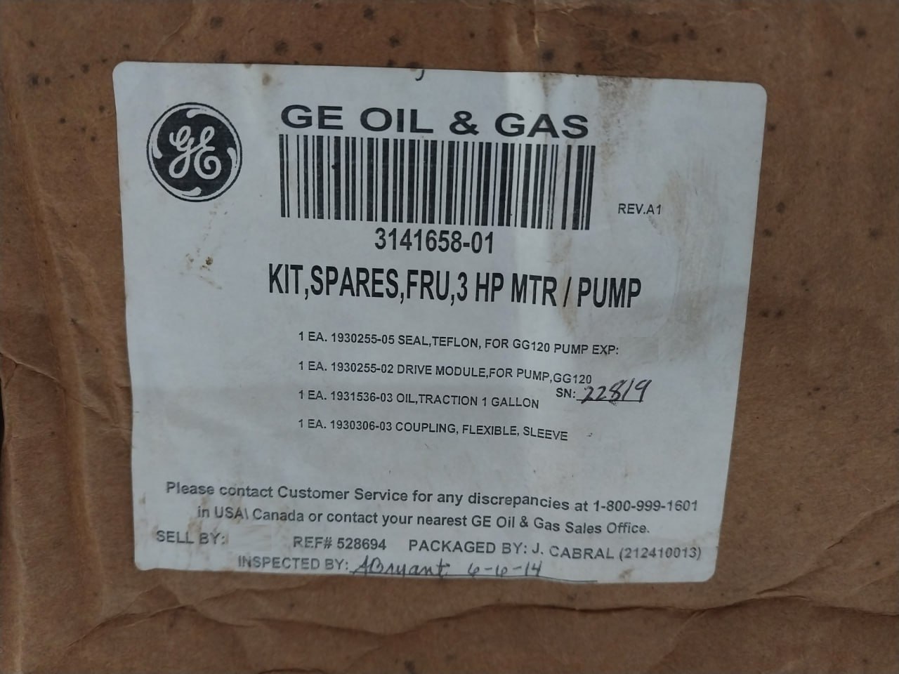 Kit, Spares, Fru,3 Hp Mtr/Pump