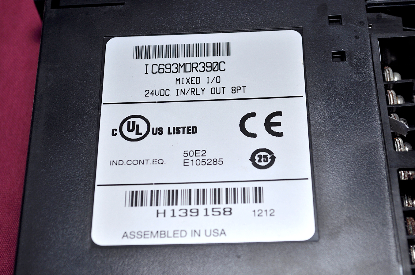 Ge fanuc ic693mdr390c mixed i/oe fanuc3ic693mdr390cmixed i/o 24 vdc in / rly out 8ptind. cont. eq. 50e2 e 105285 h 139 158made in usa