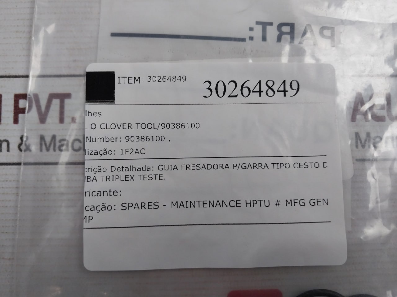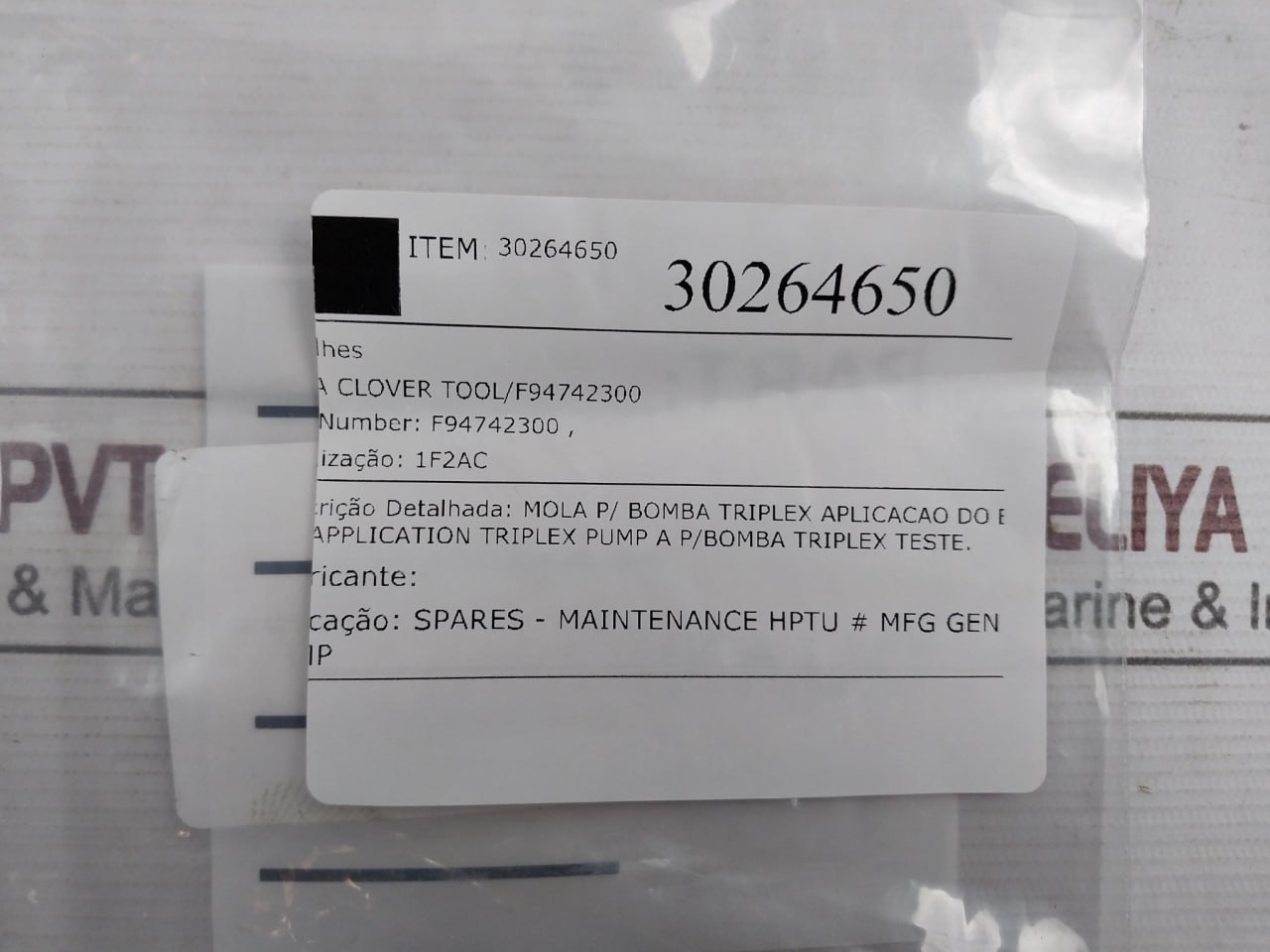 AplicaçãO/ Application: Spares – Maintenance Hptu