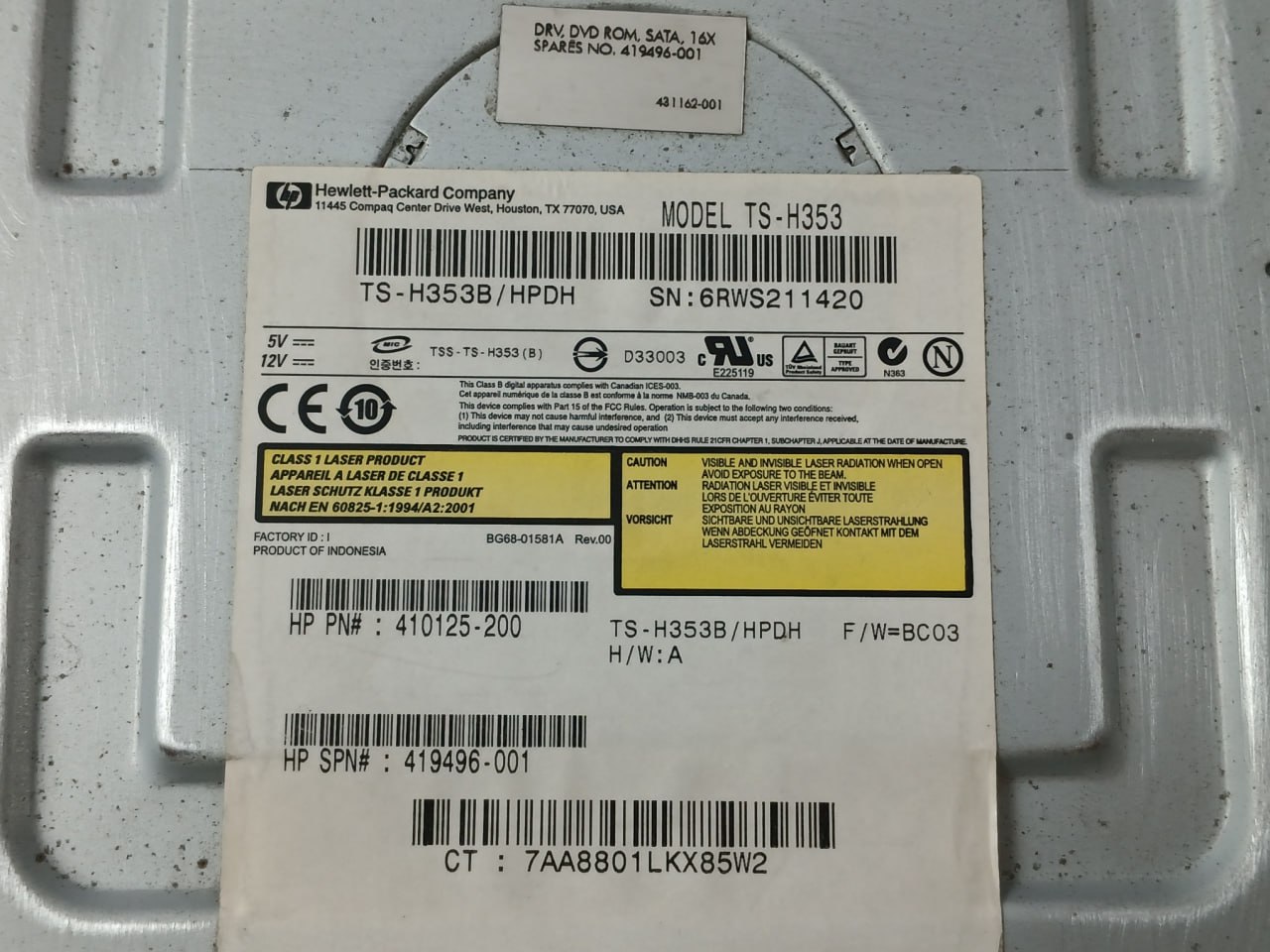 Spn/Spares No#: 419496-001