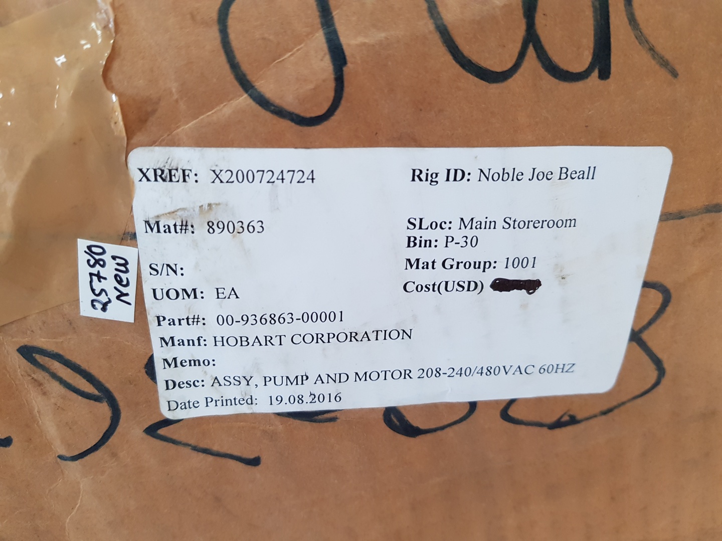 Hobart 00-936863-00001 three phase electric pump 1225u144662