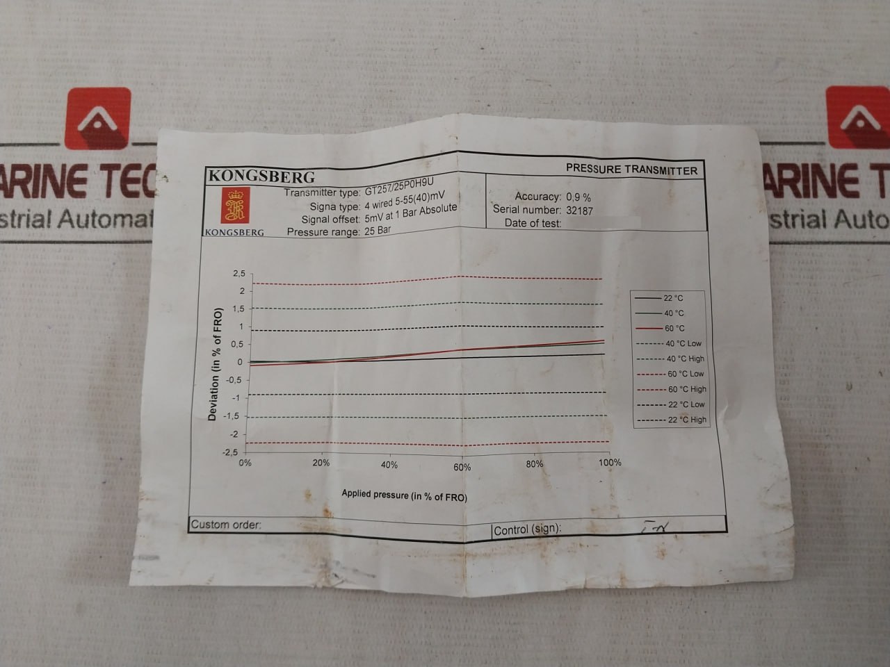 Kongsberg Gt257/25p0h9u Pressure Transmitter 100°C