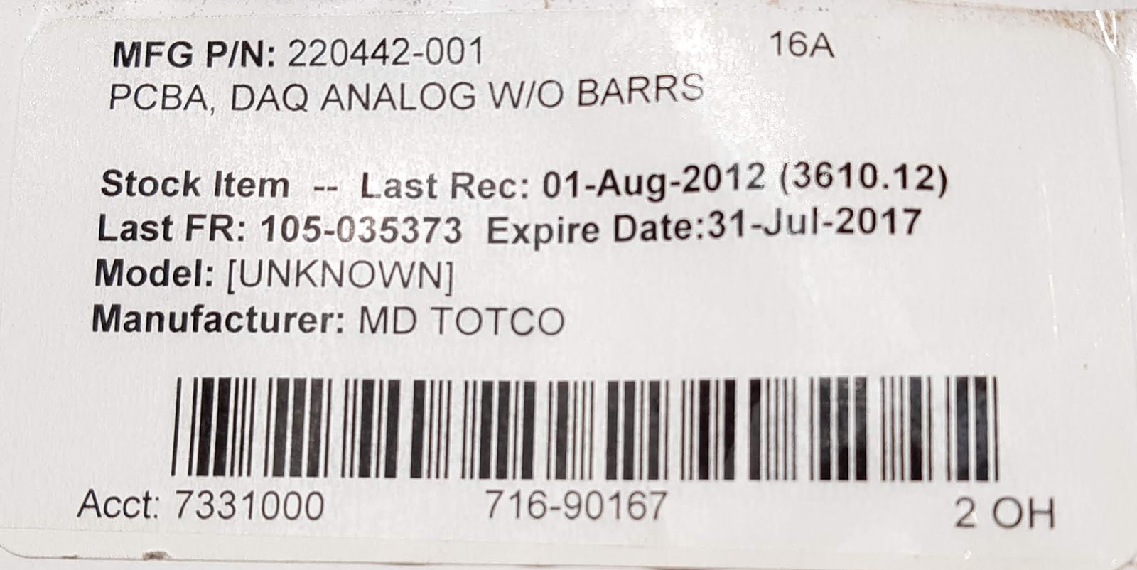 mfg p/n:220442-001 16a