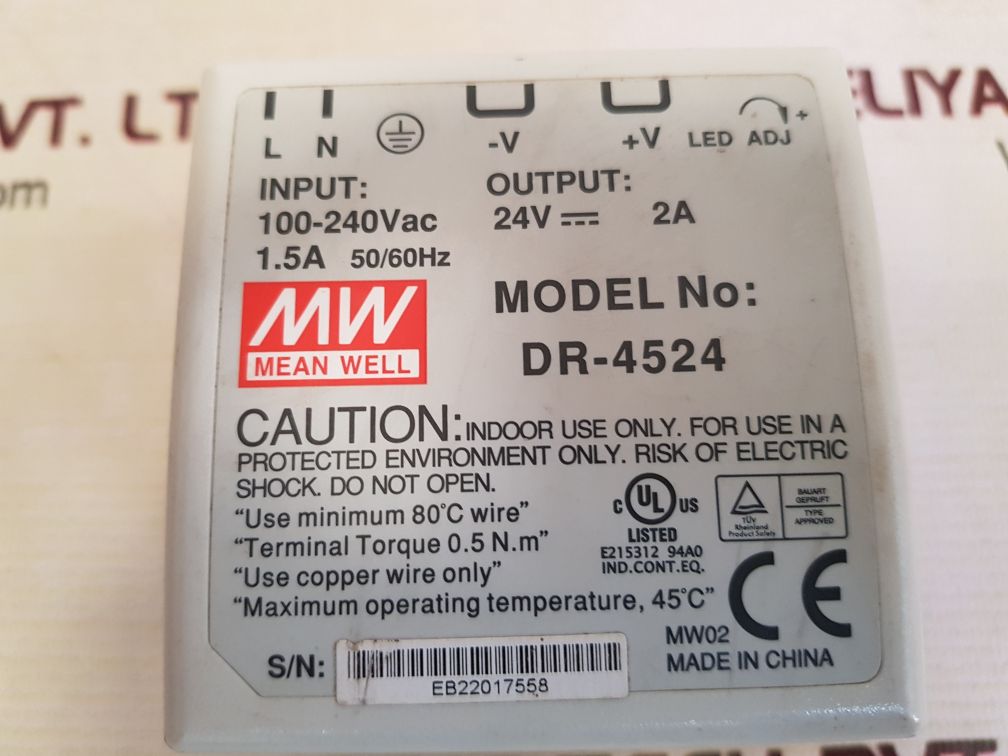 Mean Well Dr-4524 Power Supply 100-240Vac 1.5A 50/60Hz