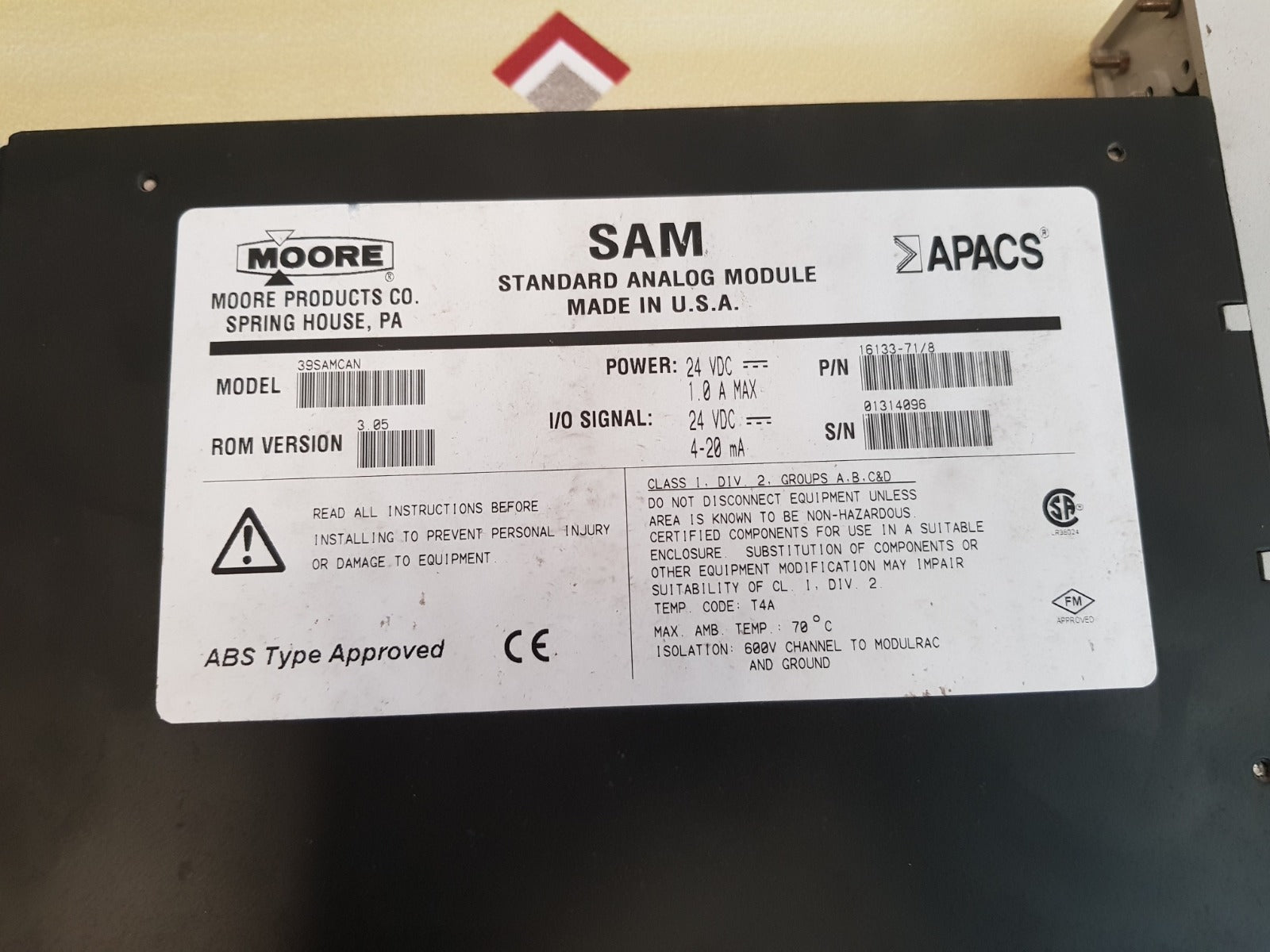 Moore sam 39samcan 16133-71/8 standard analog module