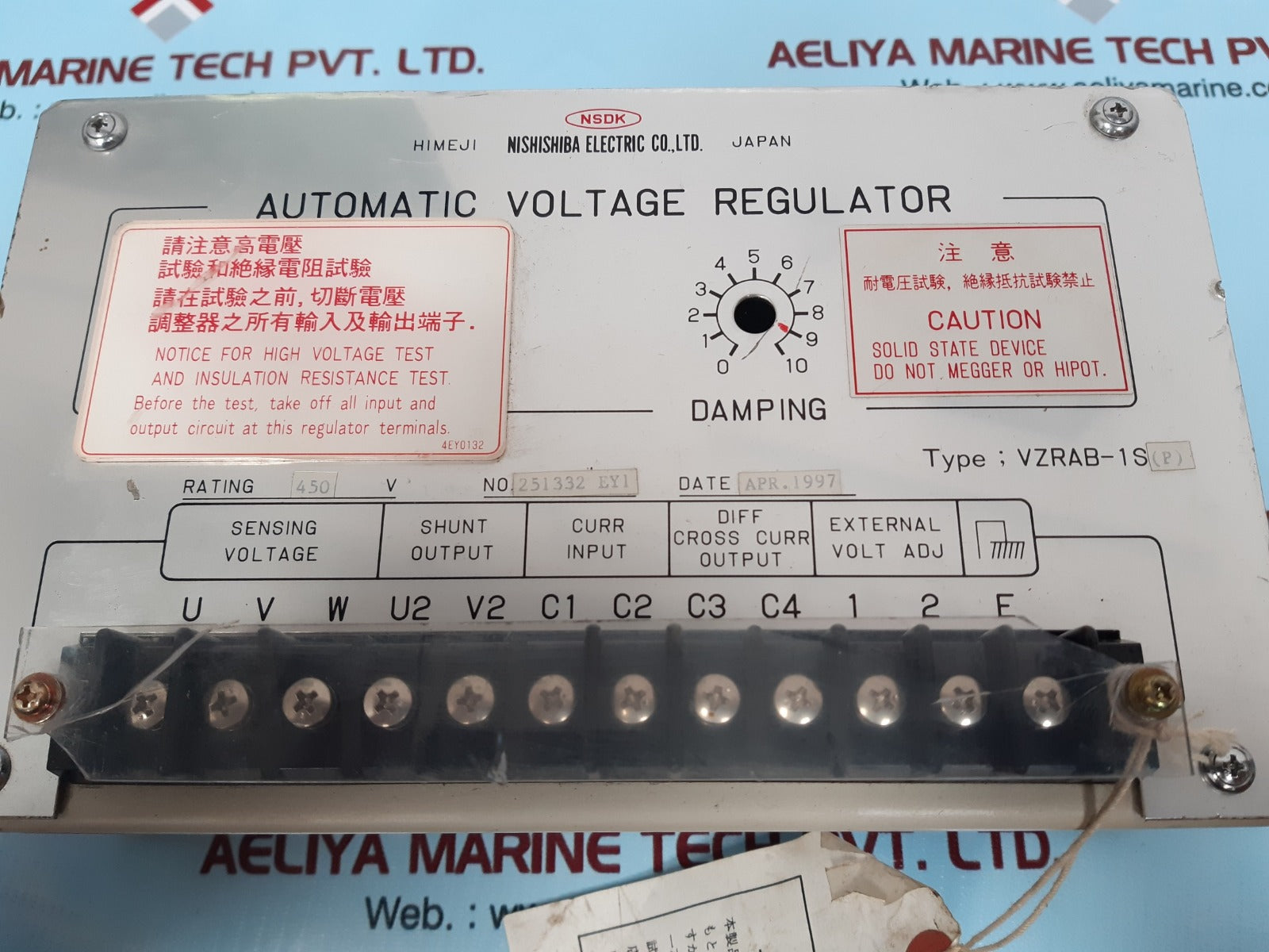 Nishishiba vzrab-1s(p) automatic voltage regulator 450v