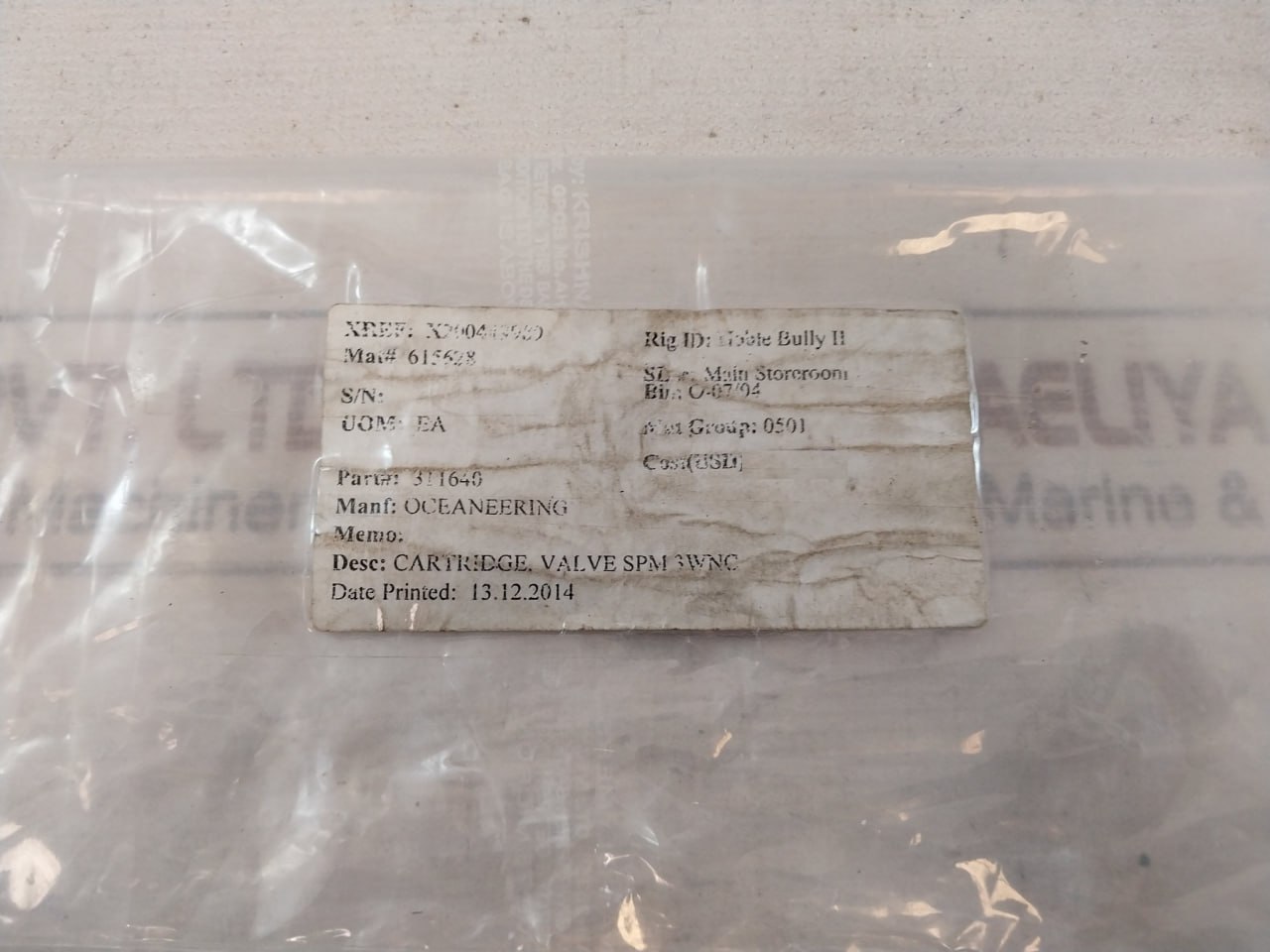 Desc: Cartridge, Valve Spm 3wnc