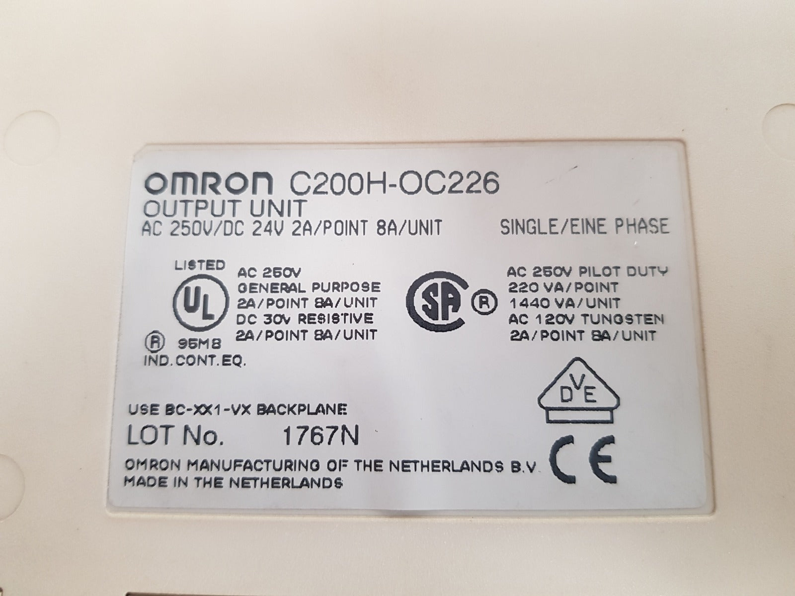 Omron C200H-oc226 Output Unit Ac250V/Dc24V