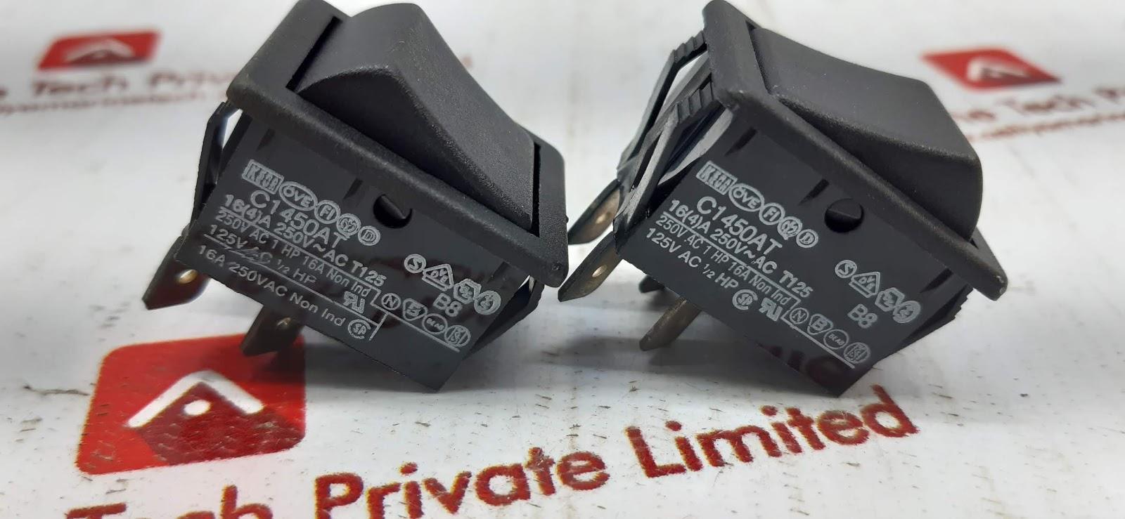 OVE C1450AT BLACK PLASTIC ON OFF ROCKER SWITCH OVEC1450AT16(4)A 250V~AC T125250V AC 1 HP 16A NON IND125V AC 1/2 HP16A 250 VAC B8