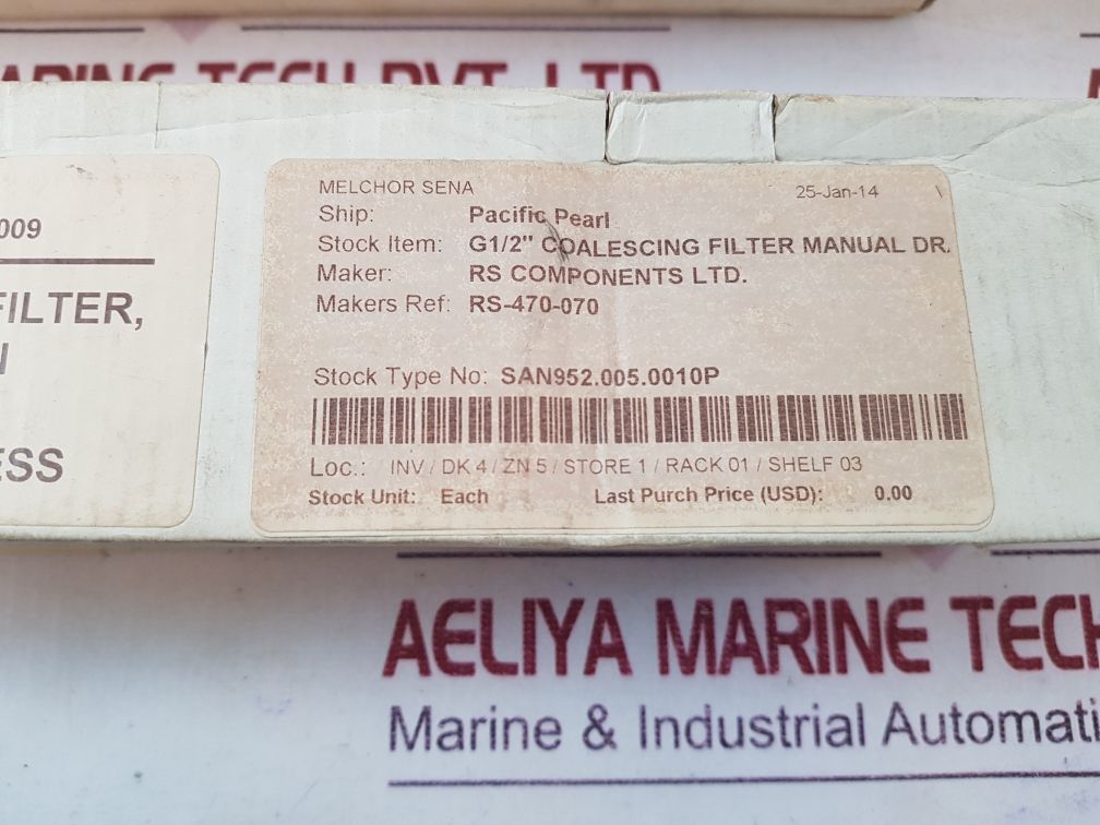 STOCK ITEM: G1/2” COALESCING FILTER, MANUAL DRAIN