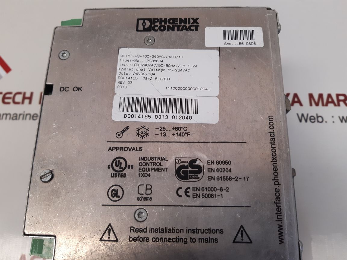 Phoenix contact quint power quint-ps-100-240ac/24dc/10 power supply