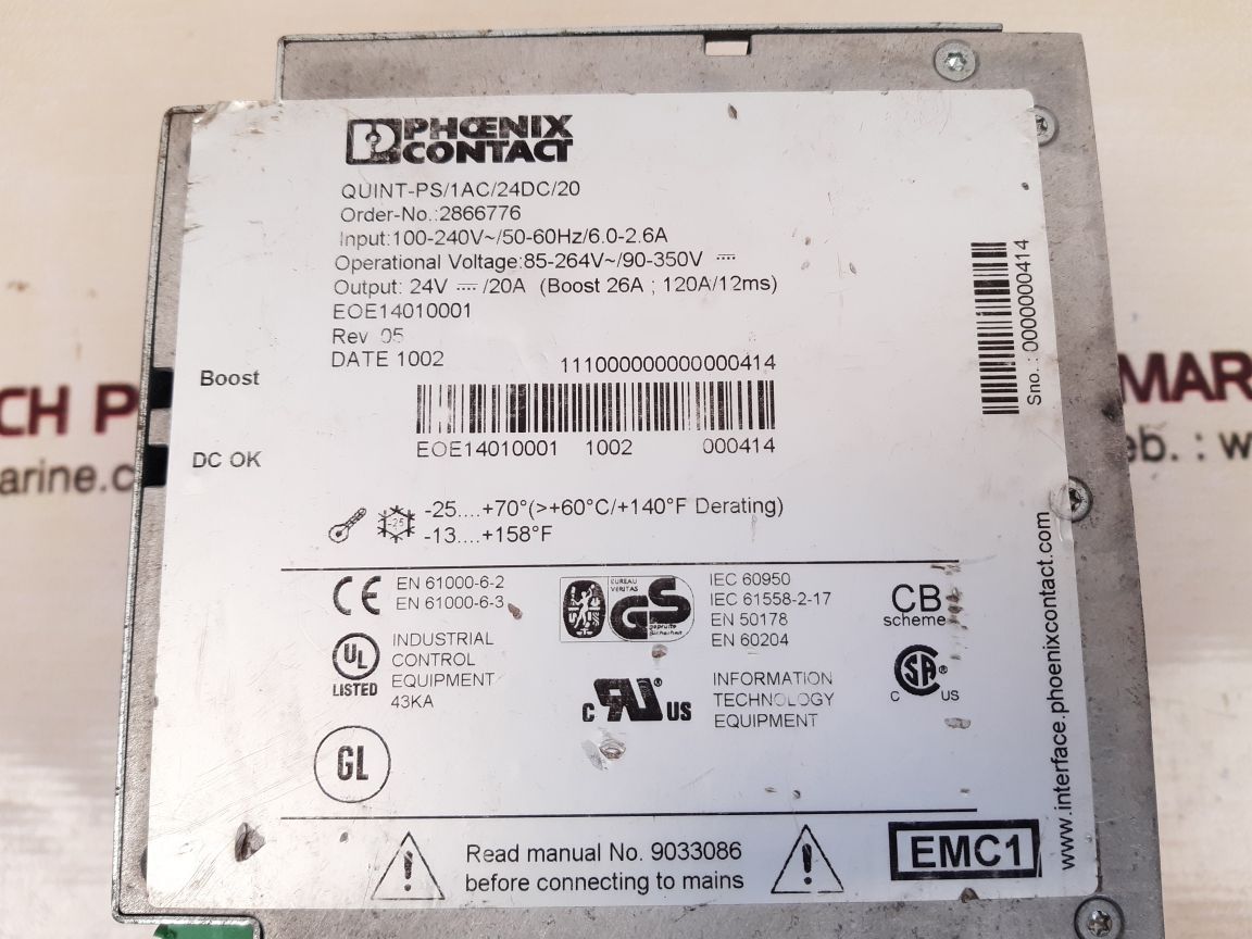 Phoenix contact quint-ps/1ac/24dc/20 power supply