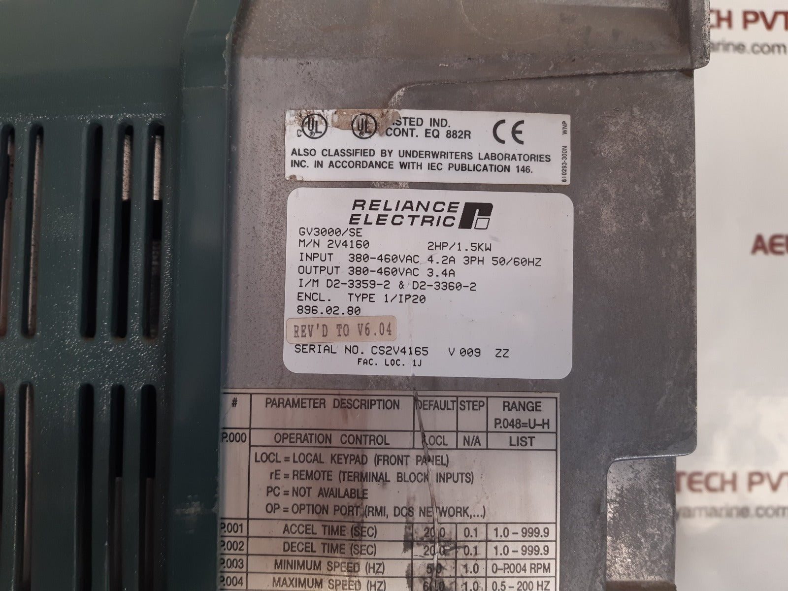 Reliance Electric Gv3000/Se Sensorless Enhanced Ac Drive 2V4160 (Not Working)