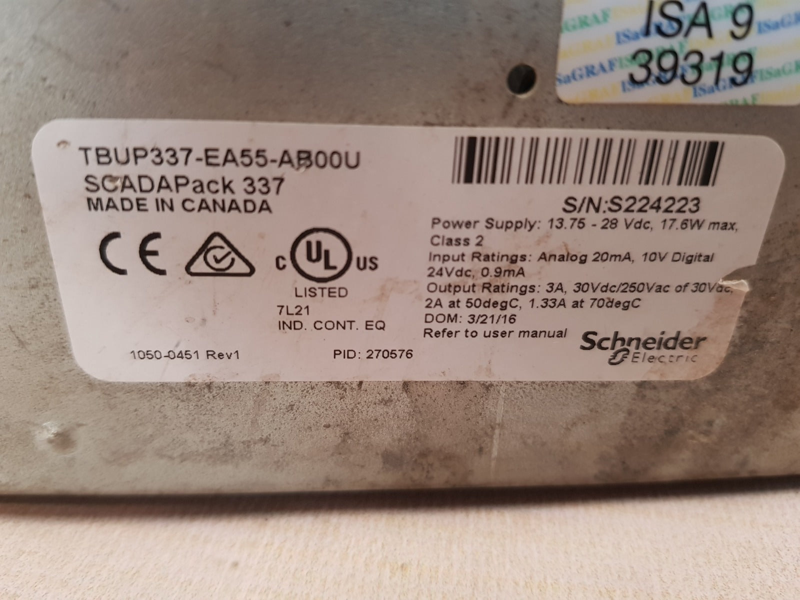 Schneider Electric Scadapack 337 Remote Telemetry Unit Tbup337-ea55-ab00U