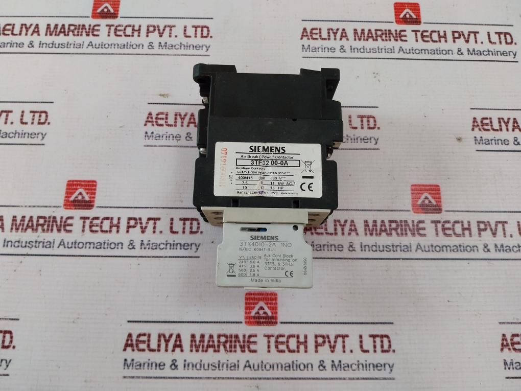 Siemens 3tf32 00-0a Air Break (Power) Contactor 3tx4010-2a With Auxiliary Contact Block Ip20