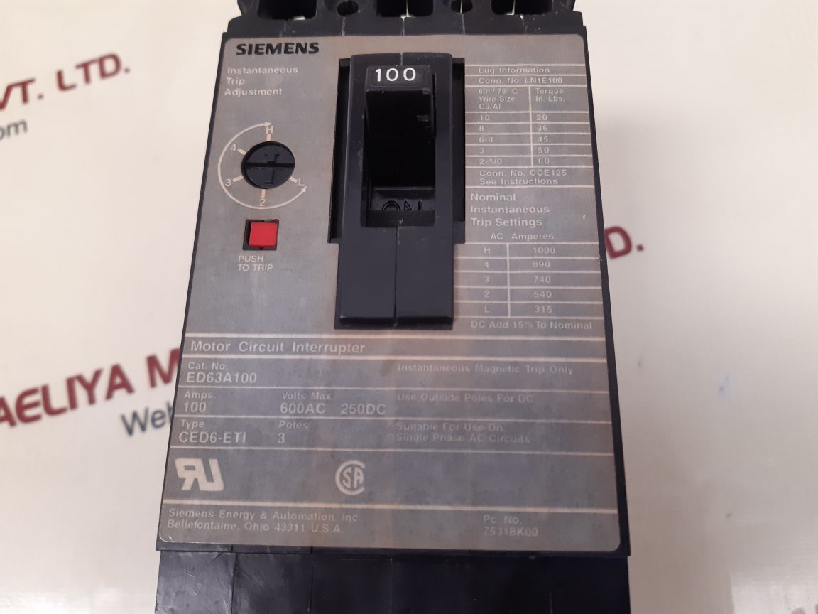 Siemens ed63a100 circuit breaker ced6-eti