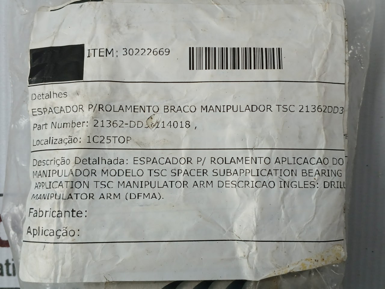 Descricao Ingles / English Description: Drill Manipulator Arm