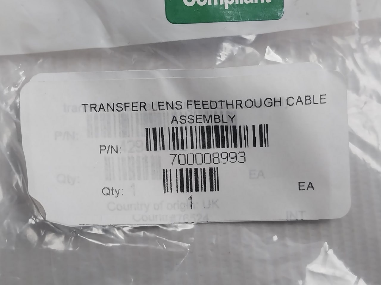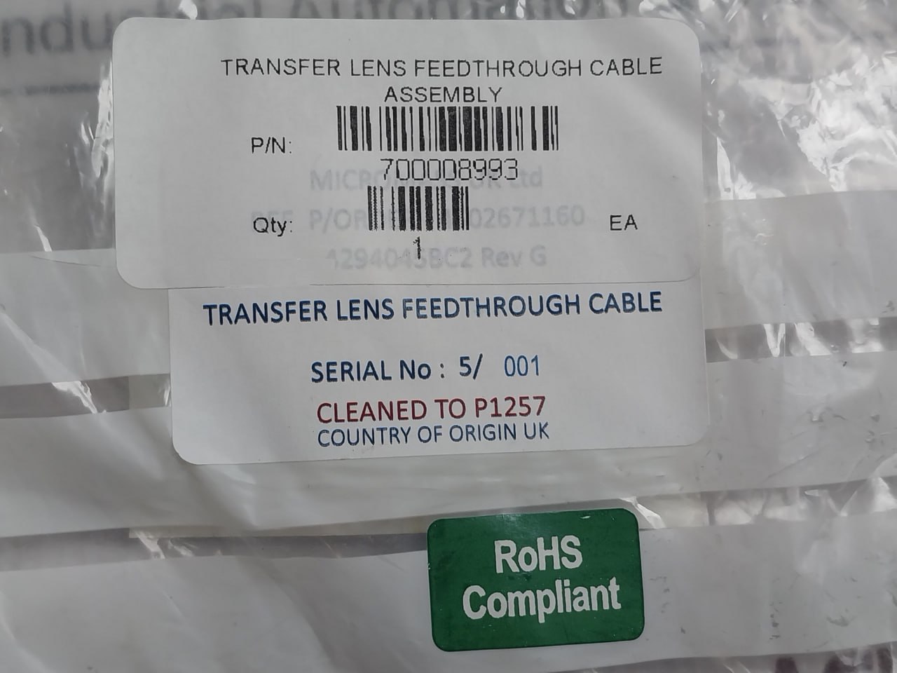 Tags Transfer Lens Feed Through Cable Assembly, Waters
